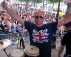 Wanting to express himself in another musical way and recognising his natural rhythmic ability David began playing bongo’s over his own DJ mixes. A quick trip to Ibiza in 2001 saw him stay the season giving birth to ‘El Hombre Timbale’, Spanish translation, ‘The Bongoman’.