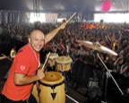 Wanting to express himself in another musical way and recognising his natural rhythmic ability David began playing bongo’s over his own DJ mixes. A quick trip to Ibiza in 2001 saw him stay the season giving birth to ‘El Hombre Timbale’, Spanish translation, ‘The Bongoman’.